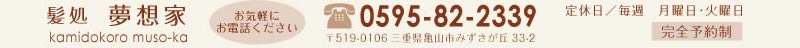 〒519-0181 三重県亀山市みずきが丘33-2 定休日/毎週 月曜日・火曜日